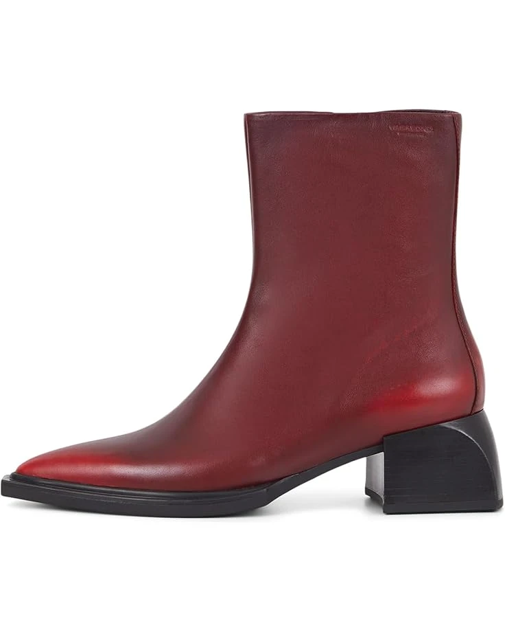 - The Vagabond Shoemakers® Vivian Leather Bootie stands on a sculptural block heel with a sharp pointy toe silhouette. Offering a statement look, the calf-high boot is crafted in brush-off leather with zippered side closure and decorative seams.