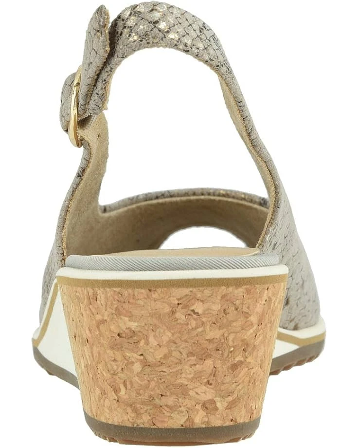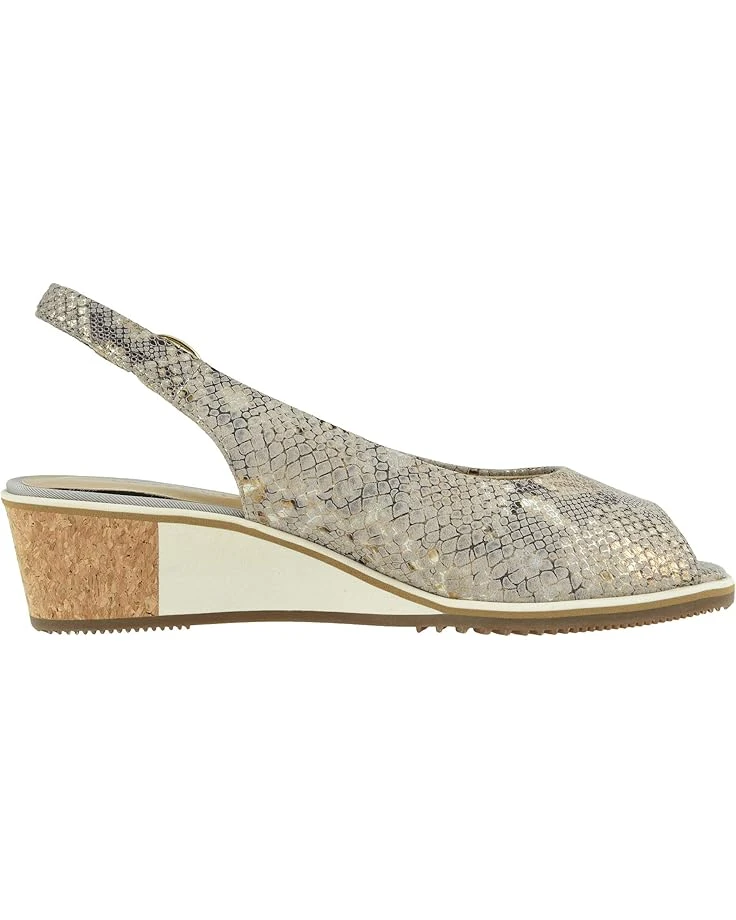 I usually wear a 9 or 9.5 in open toed/sandals. These were too short, arch not in the right place so am exchanging for size 10. The upper snake skin with gold, tan, browns is beautiful and the slingback style is flattering. The white detail on the wedge is OK – it would look better if more subtle but overall beautiful shoe. No arch support, so I will add an insert arch if the size is good. Finger’s crossed the bigger size is better.